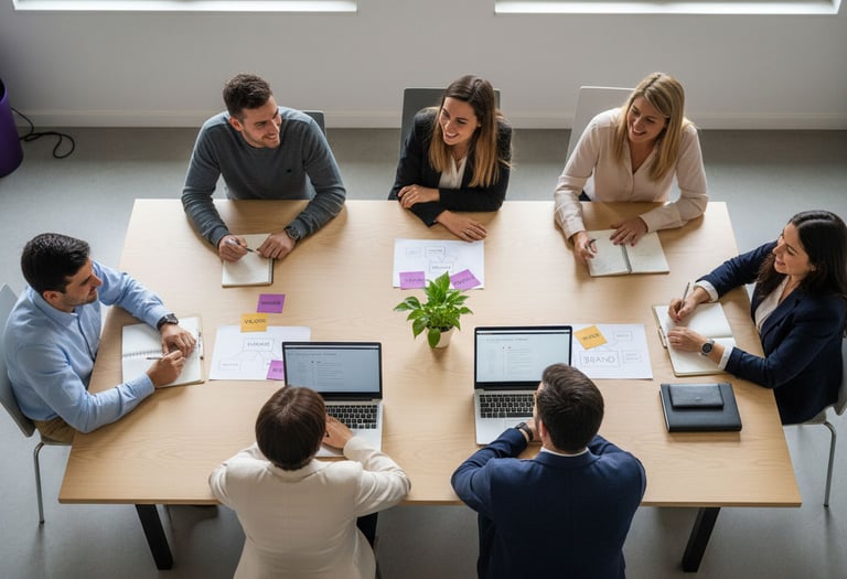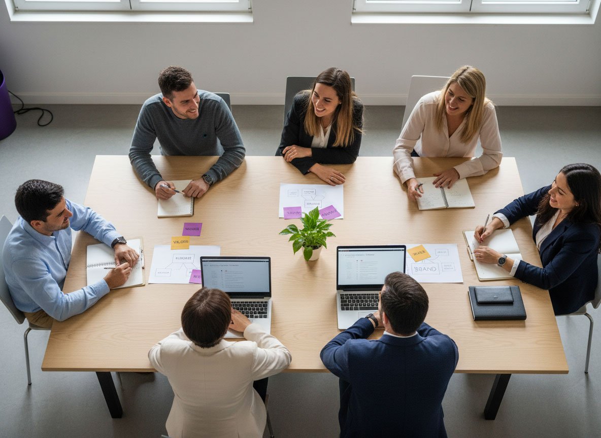Sessione facilitata di lavoro di gruppo per rafforzare la coesione del team e trasformare i valori del brand in pratiche quotidiane.